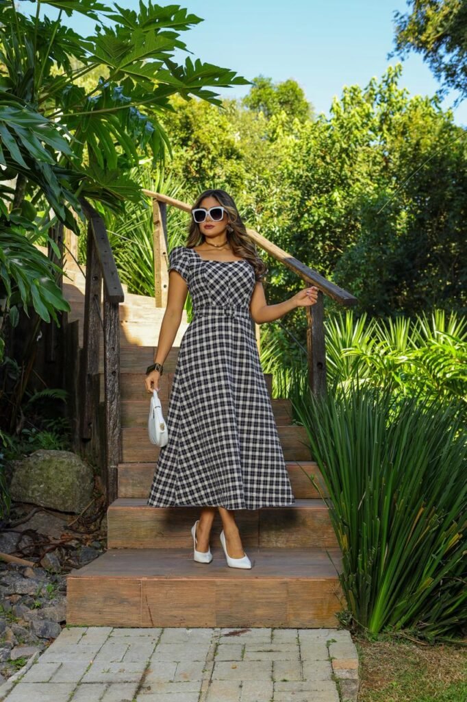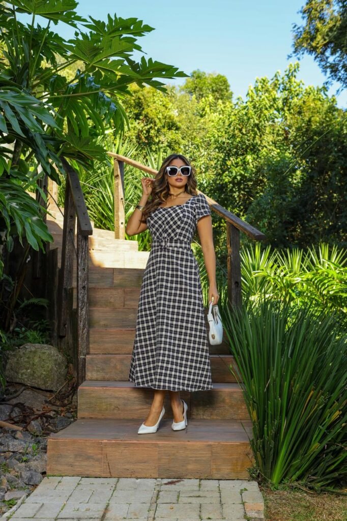 Vestido Feminino Xadrez Com Cinto Alfaiataria Premium