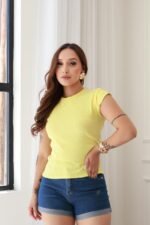Blusa Feminina Malha Canelada Com Ribana Premium